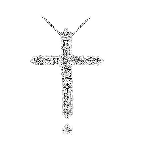 925 Silver Crystal Cross Necklace Pendant Religious Faith Christian Jewelry For Women Teen Girls
