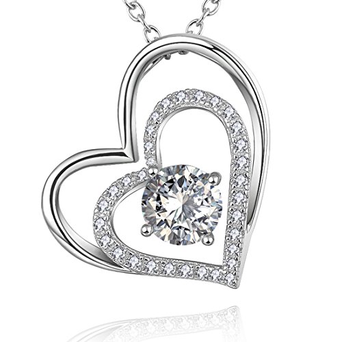 White Gold Plated 925 Sterling Silver Double Heart-Shaped Necklace Pendant with Diamond for women