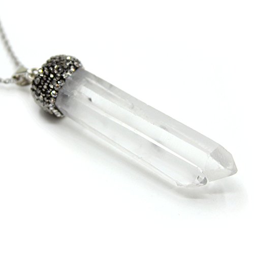 Natural Clear Quartz Necklace on 30″ Non-tarnish Chain. Magic Healing Crystal Gemstone Jewelry for Thanksgiving,Christmas Gifts