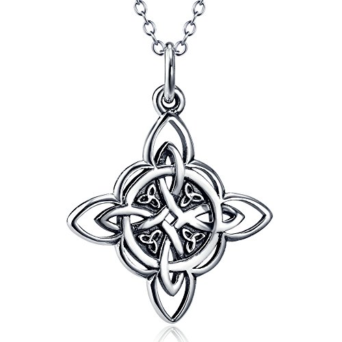 925 Sterling Silver Celtic Triquetra Trinity Knot Good Luck Pendant Rolo Chain Necklace, 18″