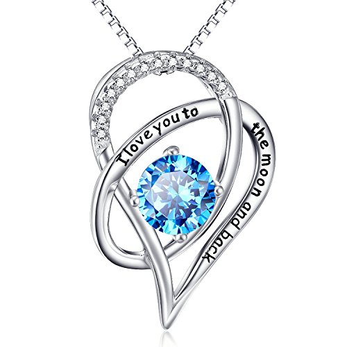 Sterling Silver “I Love You To The Moon and Back” Interlocking Heart Pendant Necklace,18″,20” Chain