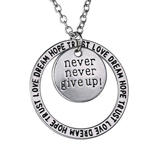Never Never Give Up Pendant Necklace – Double Round Pendant Necklace – Best Jewelry Gift for Woman