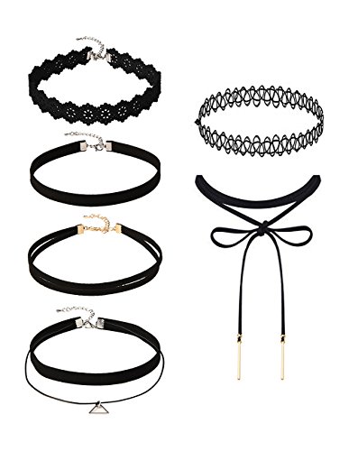 Mudder 6 Pieces Black Velvet Stretch Tattoo Choker Elastic Tassel Necklaces