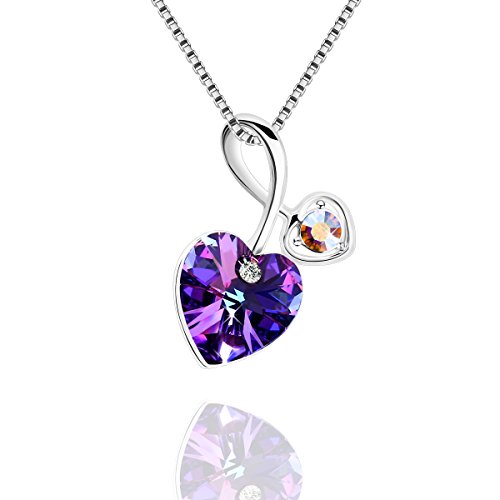 PLATO H Purple Love Heart Fashion Jewelry Pendant Necklace with Swarovski Crystal for women, 18″