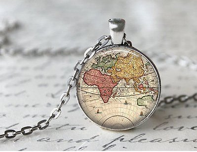 World Map Necklace, Antique Map Necklace, Globe Necklace (6)