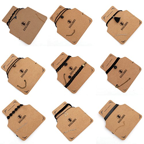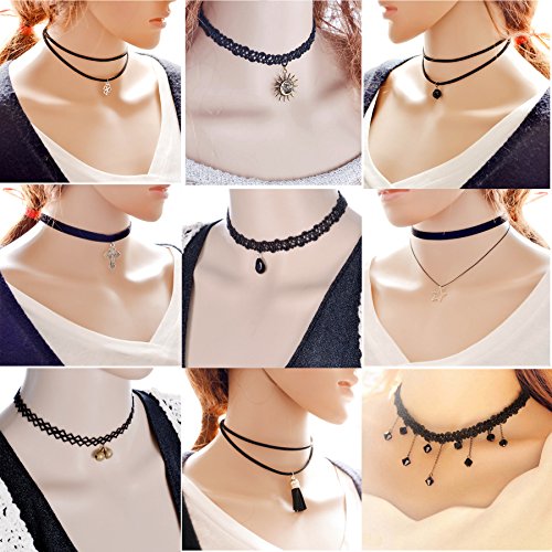 9 PCS Women’s Classic Black Velvet and Black Stretch Gothic Tattoo and Black Lace Choker collar Necklace