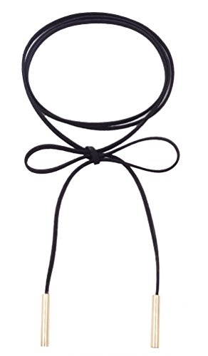 Tube on the Ends Black Faux Suede Wrap Choker Long Necklace, 60″