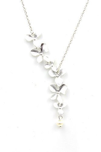 Orchid and Pearl lariat necklace – Nature Bird Pendant – Mothers day Bridesmaid Gift slv