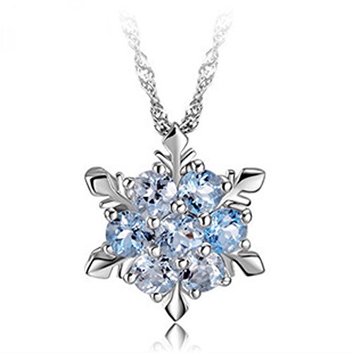 Women Girls Jewelry Elsa Frozen Snowflake Sterling Silver Necklace With Blue Pendant