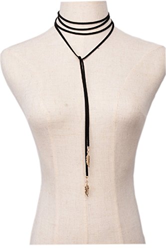 SUNSCSC Punk Gothic Stretch Tattoo Choker Elastic Tassel Leaves Pendant Long Black Velvet Chain Necklaces