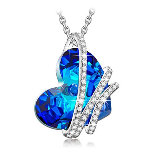 NinaQueen “Heart Of the Ocean” 925 Sterling Silver Pendant Necklace with Sterling Silver cable chain 2016 Paris Fashion Week Latest Heart Shape Design, Blue Sapphire SWAROVSKI ELEMENTS Women Jewelry, Symbol of Love Fine Necklace. Ideal gift for your wife,Girlfriend,Mom and daughter on Birthday, Valentines day, Graduations, Mother’s Day, Thanksgiving Day and Christmas Day.