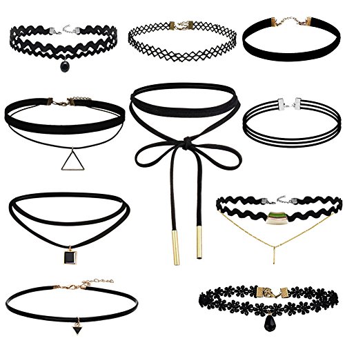 Paxcoo 10 Pieces Choker Necklace for Women Girls, Black Classic Velvet Stretch Gothic Tattoo Lace