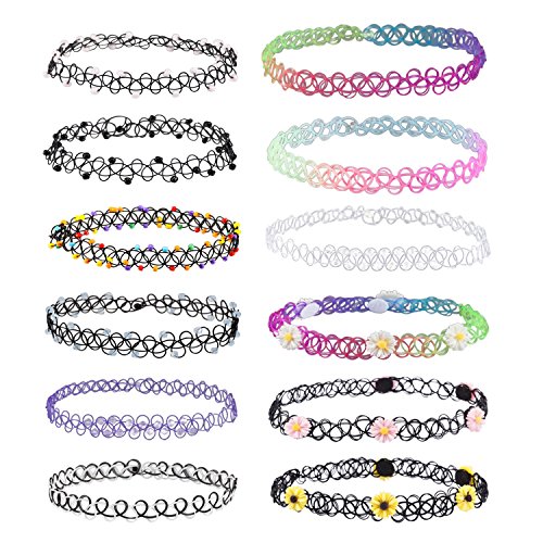 12PC Choker Rainbow Flowers Stretch Gothic Tattoo Henna Necklace