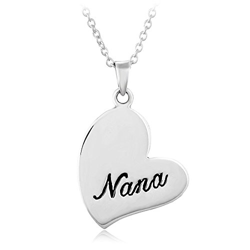 925 Sterling Silver “Nana” Heart Grandmother Grandma Pendant Necklace, 18 inches