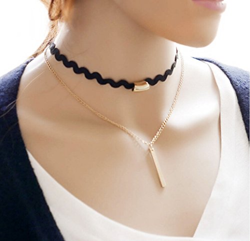 FOROLAV 3/8″ Girls Black Velvet Choker Necklace with Moon Pendant