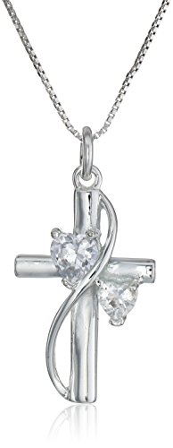 Sterling Silver Cubic Zirconia “Faith Hope Love” Cross Pendant Necklace, 18″