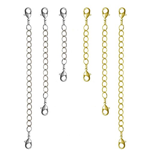 Nickel Free Set Of 6 Necklace Bracelet Extenders 2″, 3″ 4″, No Tools Needed! Usa, in Gold Tone with Silver Tone Finish