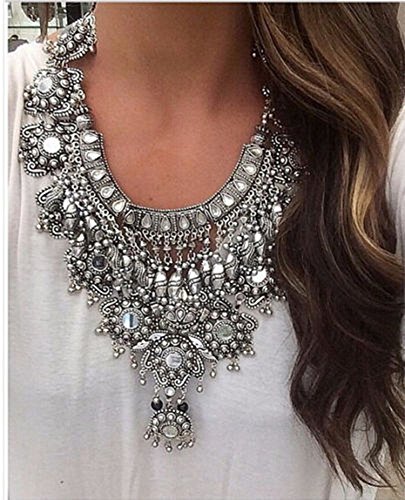 Pinbo Women Vintage Design Silver Long Boho Statement Necklace Trendy Turkish Jewelry