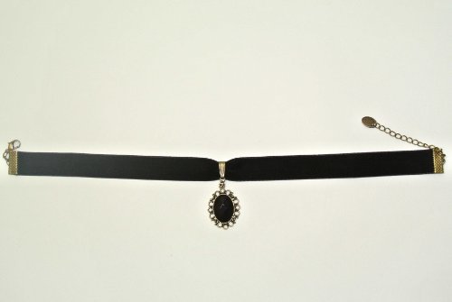 Black Elegant Retro Gothic Lolita Rhinestone Velvet Lace Pendant Necklace Choker