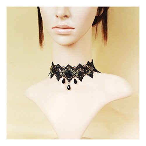 Black Rose Bead Popular Girl Gothic Lolita Black Lace Collar Choker Necklace