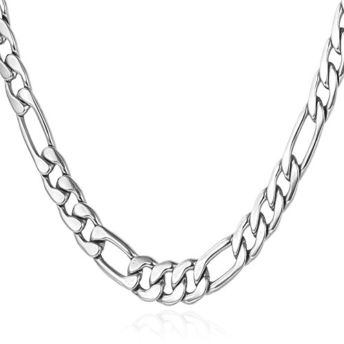Men’s Stainless Steel Figaro Chain Necklace,18-28″ 5MM
