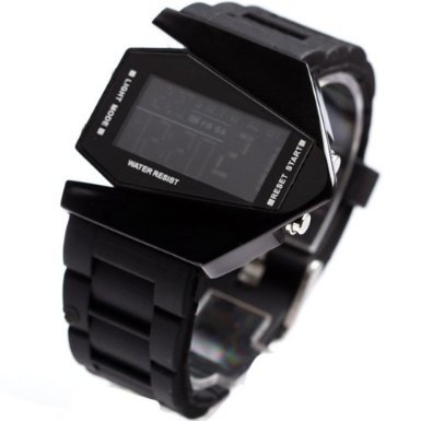 Elegant Plane Style Digital Display LED Silicone Wrist Watch Black