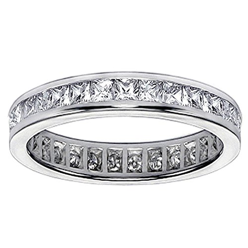 18k White Gold Princess Cut Diamond Channel Set Eternity Wedding Band (1.60-2.10 CT TDW)