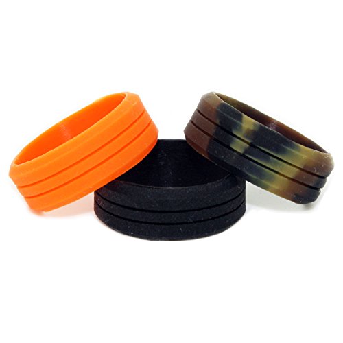 Silicone Wedding Rings 3 Pack (Orange, Camo and Black) – Great for Outdoors, Sports, Gym, Electricians