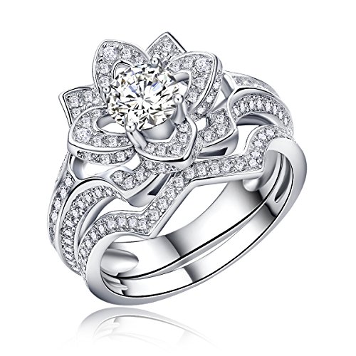 Newshe Flower Round White AAA Cz 925 Sterling Silver Wedding Band Engagement Ring Sets Sz 5-10