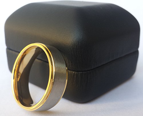 Glytterati Men’s Wedding Band in Titanium 8mm with Gold Ion Plating Sizes 9-12 Rings