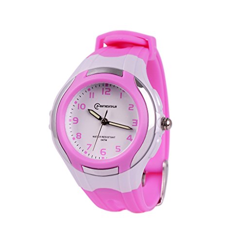 WOLFTEETH Analog Quartz Girls Watch White Dial Kids Wrist Watch Waterproof Designer Learning Time Watch, Plastic Band Purple 304402