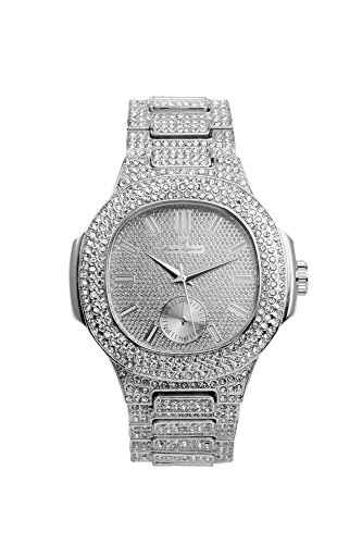 Bling-ed Out Oblong Case Metal Mens Watch w/Gift Box – 8475 – Silver/Silver