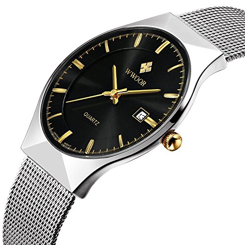 Fashion Mens Watch Mesh Band Japanese Analog Quartz Movt Thin Dial Date Wrist Watches,Black
