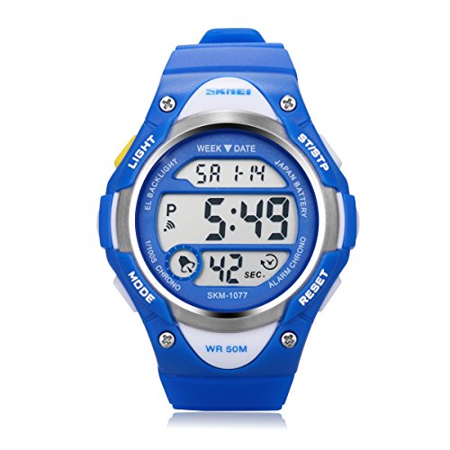 Outdoor Sports Children Watch ,Children’s Waterproof Wrist Watch Kids Lightweight Silicone ,LED Digital Alarm for Girls Boys Watch Blue