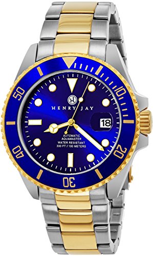 Henry Jay Mens Self Winding Mechanical Automatic “limited Edition” 23K Gold Plated Two Tone Stainless Steel “Specialty Aquamaster” Professional Dive Watch
