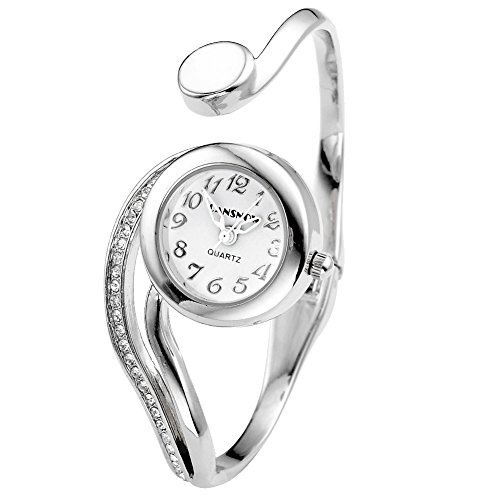 Top Plaza Fashion Women’s Bangle Cuff Bracelet Analog Watch – Silver Tone