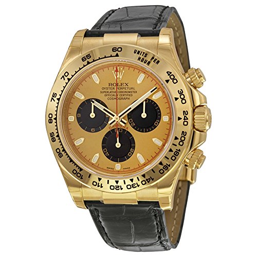 Rolex Cosmograph Daytona Champagne Index Dial Black Leather Bracelet 18kt Yellow Gold Mens Watch 116518CSL