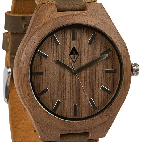 Wood Grain Handmade Mens Walnut Wood Natural Wooden Watch with Genuine Brown Leather Band