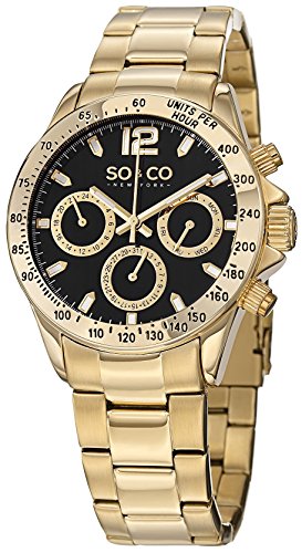 SO&CO New York Mens Gold “Specialty Monticello” Quartz Watch with Date