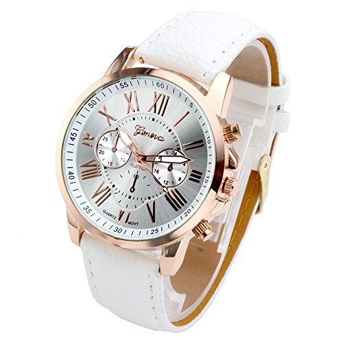 Top Plaza Fashion Women’s Analog Watch, PU Leather Band Rose Gold Tone – White