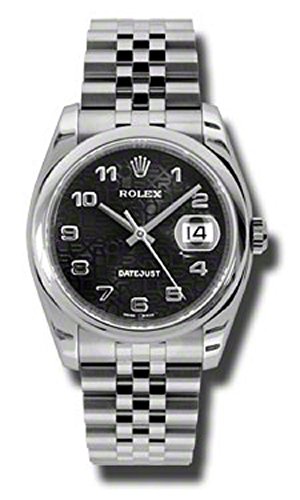 Rolex Oyster Perpetual Datejust 36mm Stainless Steel Case, Domed Bezel, Black Jubilee Dial, Arabic Numerals and Jubilee Bracelet