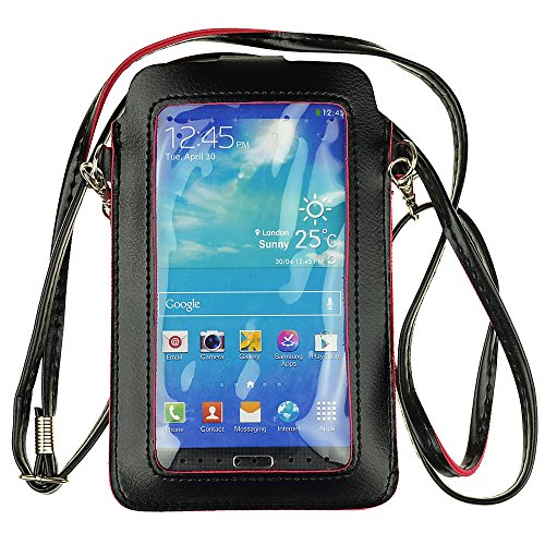 Crossbody Women Cellphone Purse PU Leather Wrist Clutch Bag Cash Pouch Wallet with Touch Screen View Window for iPhone 8 Plus/iPhone X/iPhone 7 Plus/Samsung Galaxy Note9 (Below 6.5 inch)