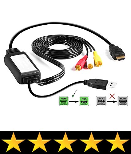 HDMI to RCA Cable Converts Digital HDMI Signal to Analog RCA/AV – Works w/TV/HDTV/Xbox 360/PC/DVD & More – All-in-One Converter Cable Saves You Money – HDMI to AV Converter