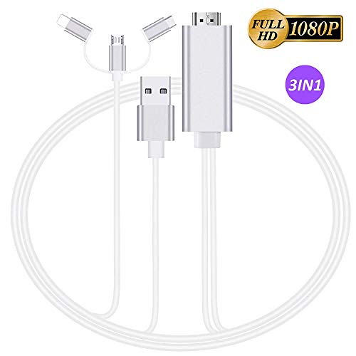 3 in 1 HDMI Adapter Cable,FERRISA HD 1080P Lighting Micro USB Type C/USB C to HDMI Cable Converter,Compatible with iOS Android Phone Samsung S8/9/Note 8/9,Mirror Mobile Phone Screen to TV/Projector