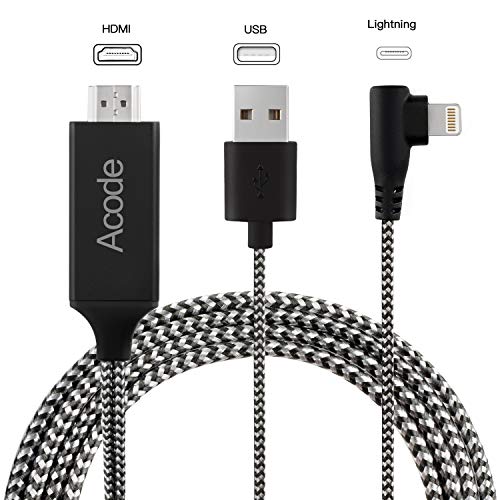 Compatible with iPhone to HDMI Cable, Acode 6.6ft iPhone to HDMI Adapter Connector 1080P HDTV Cable, Digital AV Adapter Cord for iPhone X/8/7//6/5s Plus/iPad/iPod to TV Projector (Black)