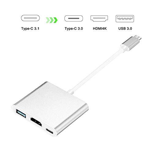 USB C to HDMI 4K Multiport Adapter, Anlyso USB 3.1 Type-C to HDTV HDMI Adapter Converter 4K+USB 3.0+USB-C Charging Port for New MacBook/Dell XPS13/Chromebook Pixel/Yoga 900/HDTV/Projector (Silver)
