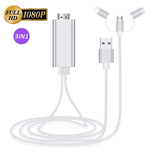 3 in 1 HDMI Cable Adapter, ZAMO 1080P Micro USB/Type-C to HDMI Adapter Mirror Mobile Phone Screen to TV/Projector/Monitor Compatible with Samsung/Huawei and More Android Devices