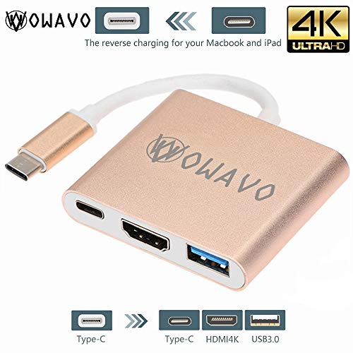 OWAVO USB-C-to-HDMI, LoHi 3-in-1 Digital Multiport Adapter, USB-C Quick Charging + HDMI Supports 4K 30HZ + USB 3.1 Port HDMI Converter MacBook/ChromeBook Pixel/USB-C Devices/HDMI Adapters