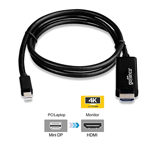 gofanco Gold Plated 3 Feet Mini DisplayPort 1.2 to HDMI Cable 4K (Thunderbolt 2 Compatible) for Mini DisplayPort-equipped systems to connect to HDMI HDTVs or Monitors
