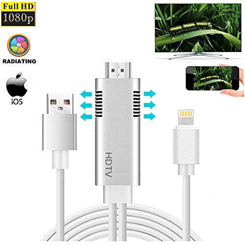 Lightning Digital AV Adapter, 1080P HDMI Lightning to HDMI Adapter Cable for iPhone X,iPhone 7/7Plus,iPad Air/Mini/Pro,Monitor and iPod Models,Plug and Play iPhone to HDMI (long)